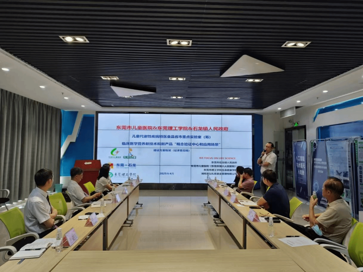 2025年5月19日上午,由太阳城集团与石龙镇人民政府、东莞市第八人民医院(东莞市儿童医院)共同举办的专题研讨会在公司科创院507会议室顺利召开。会议围绕“肠内营养制剂质量评价数据库建设”及“共建儿童代谢性疾病特医食品实验室”两大主题展开深入探讨,旨在推动产学研深度融合,助力地方生命健康产业高质量发展。