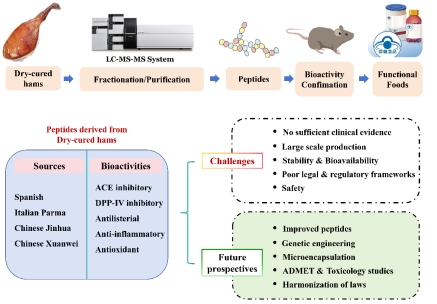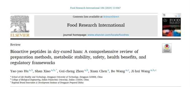 2024年5月10日,公司肖珊副教授团队于国际食品顶级期刊《Food Research International》在线发表题为“ Bioactive peptides in dry-cured ham: A comprehensive review of preparation methods, metabolic stability, safety, health benefits, and regulatory frameworks ”的综述文章。论文第一作者为胡峣峣博士,通讯作者为肖珊副教授。