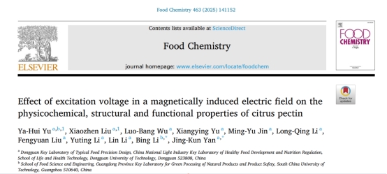 2024年9月6日,公司闫景坤教授团队于国际学术期刊《Food Chemistry》(中科院JCR 1区)在线发表题为“Effect of excitation voltage in a magnetically induced electric field on the physicochemical, structural and functional properties of citrus pectin”的研究性文章。论文第一作者为于亚辉博士,通讯作者为闫景坤教授。