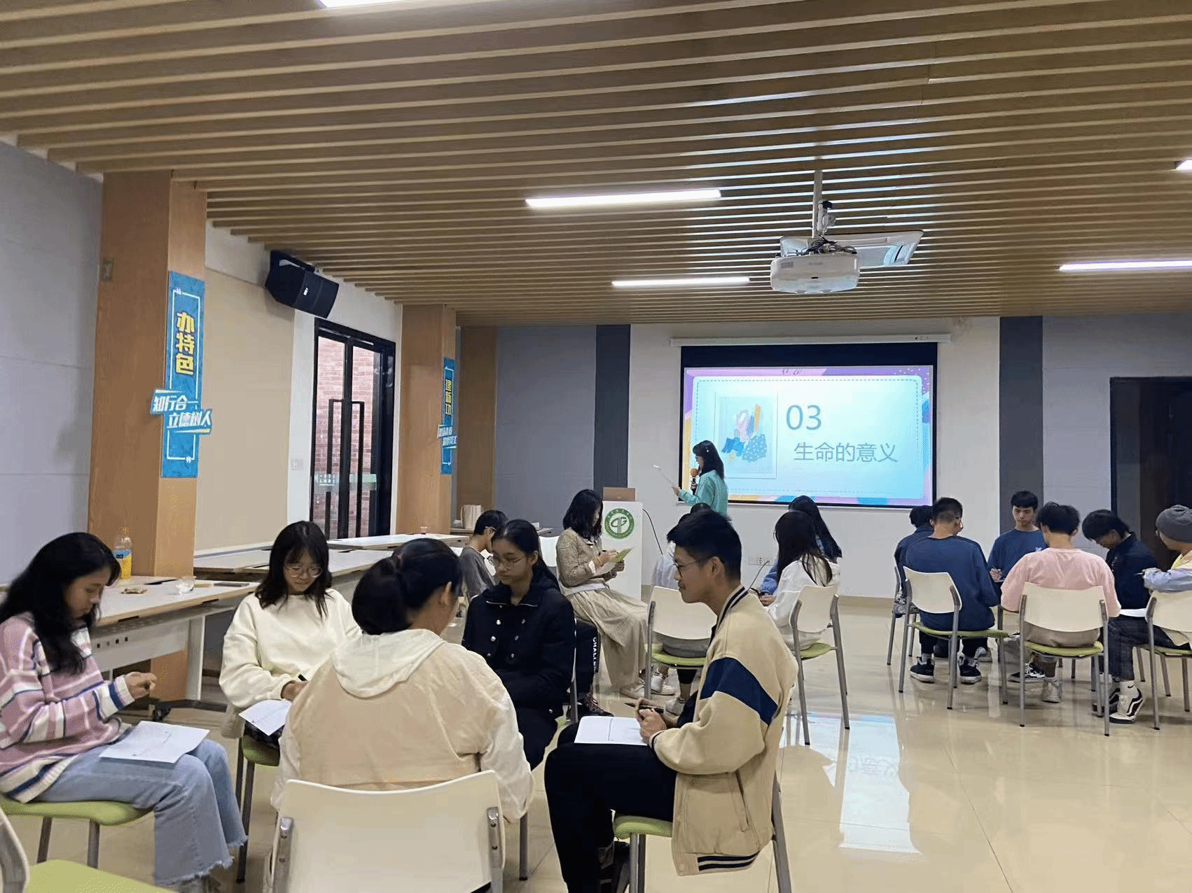21级食品质量与安全1班的同学于2021年12月8日在员工活动中心A110室开展心理主题班会活动。在活动期间,同学们都积极配合,氛围融洽,在小组长的带领下同学们认真思考,乐于分享,善于倾听,使本次心理班会取得巨大成功。最后是集体朗诵,给予同学们鼓励和前进的动力,使本次班会的主题得到升华。