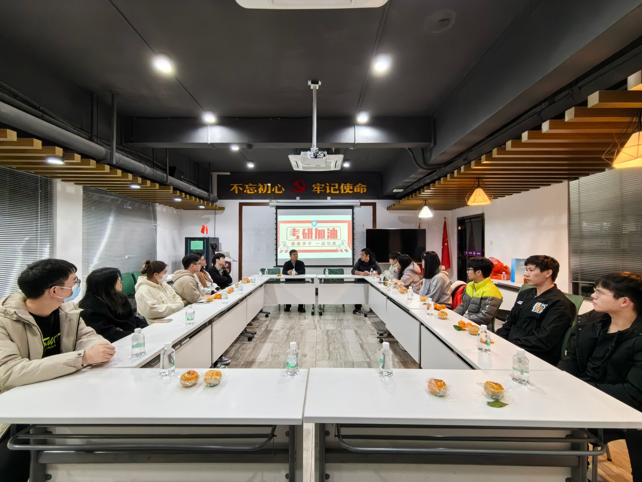 在2024年研考即将到来之际,为鼓舞考研学子士气,增强考试信心,缓解备考压力,12月18日,太阳城集团在莞华社区活动室开展2024届考研加油活动。活动由公司党委副书记葛金虎主持,毕业班班主任肖珊、刘宇佳,辅导员杨梅青、刘文渊出席,为考研学子送上暖心祝福。