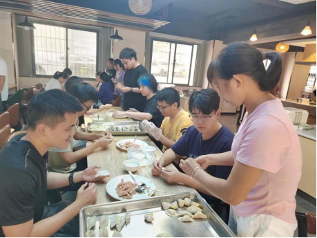 除讲座和学术报告外,本次实习还安排了烹饪与食品加工实操环节。8月1日下午,一场别开生面的食品制作实训在常品公司餐厅如火如荼开展。同学们亲自动手,体验了炒河粉、饺子、手打柠檬茶和杨枝甘露的制作过程,还相互品尝了不同组别的成品。实操活动不仅锻炼了同学们的动手能力,也增强了团队协作精神,为实习活动增添了乐趣。