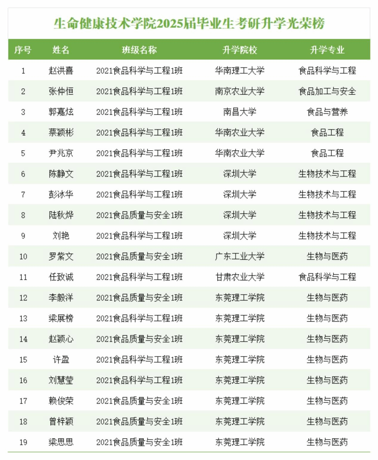 近日,2025年全国硕士研究生招生考试录取结果陆续公布,太阳城集团考研学子捷报频传,19名毕业生成功考取硕士研究生,升学率达31.15%,创历年新高。其中多名学子被华南理工大学、南京农业大学、南昌大学、华南农业大学等省内外知名学府录取。